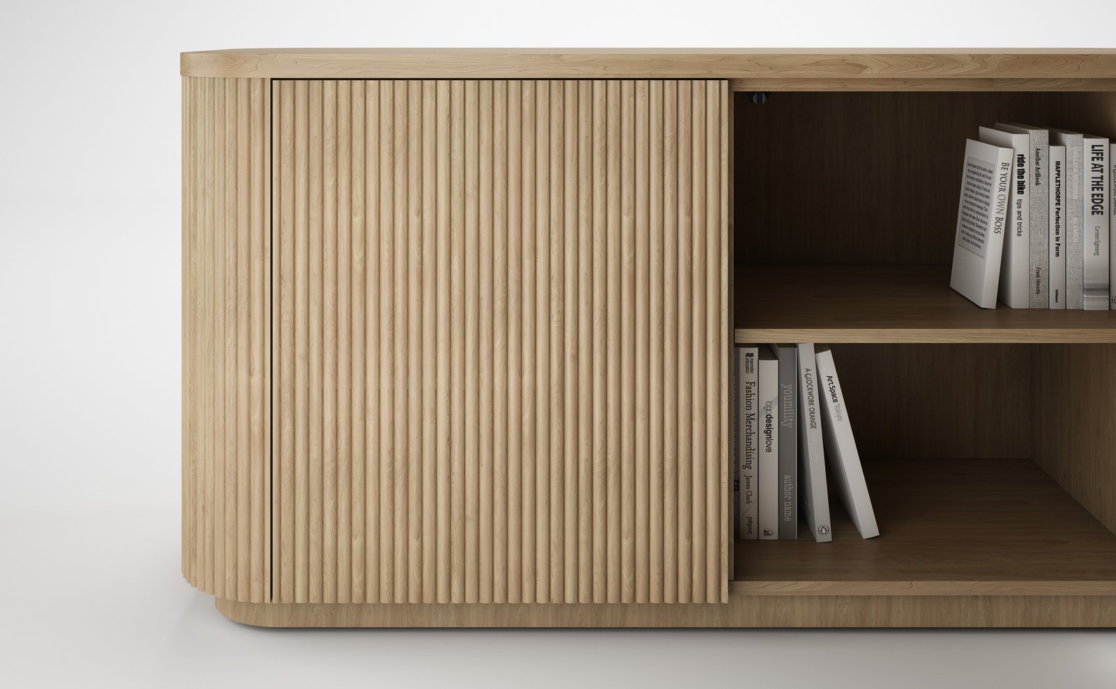The Ollie Credenza introduces warmth and refined texture to conference environments with its signature tambour wrap and optional finishes and top material options. Integrated storage options including refrigeration, waste, and shelving support modern workplace needs.