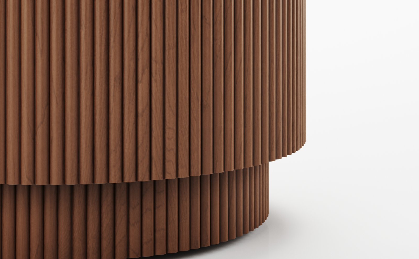 The Ollie Drum Table is constructed from rich maple tambour, bringing natural warmth and an organic feel to any environment. Offered in multiple sizes and three functional heights, it works beautifully as an end table or a coffee table alongside lounge seating. A wide range of top options and five maple tambour finishes let you tailor the look to your space. An optional three inch recessed plinth adds a subtle lift, and integrated power can be included to keep devices charged during quick touch downs or casual collaboration.